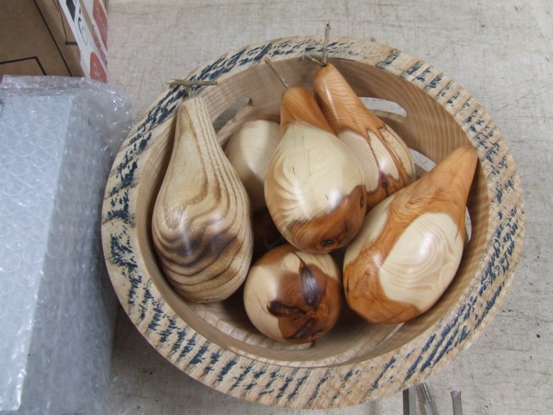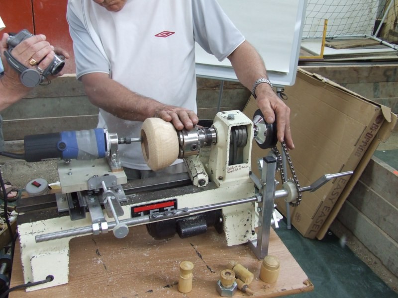 Les participants (environ 35) ont apporté diverses essences de bois pour donner de superbles couleurs et de formes à leurs oeuvres. Pour aider à réaliser les fruits faisant l'objet du sujet du jour, Guy Paul, tourneurs depuis peu de temps, a réalisé des pièces adaptables sur les mandrins pour pouvoir terminer les finitions.