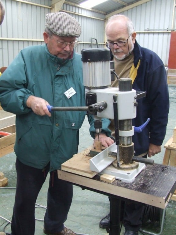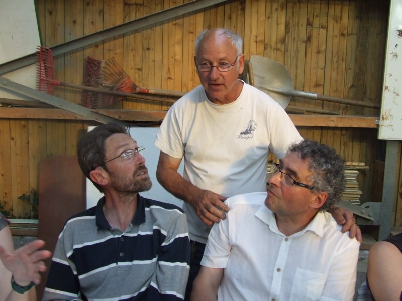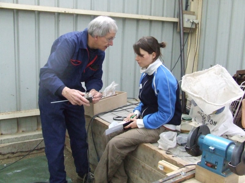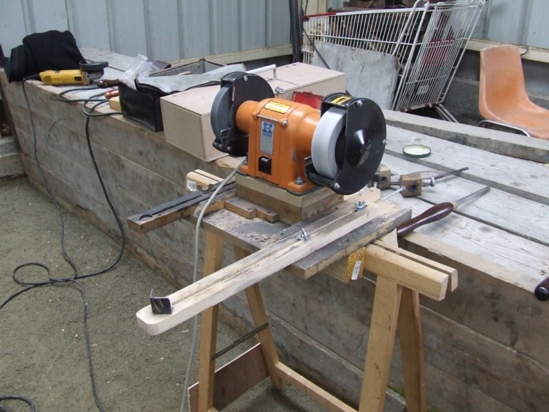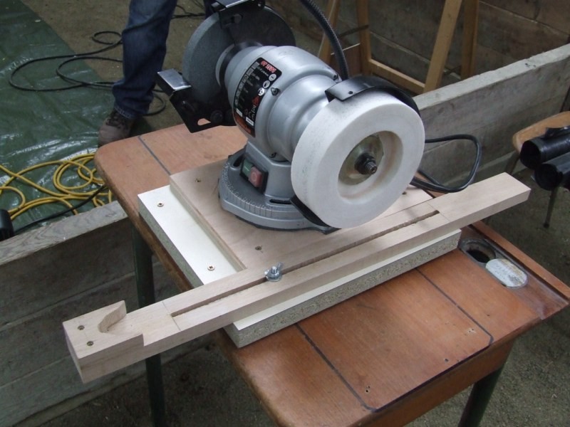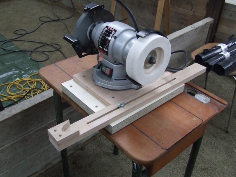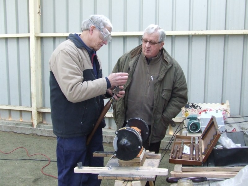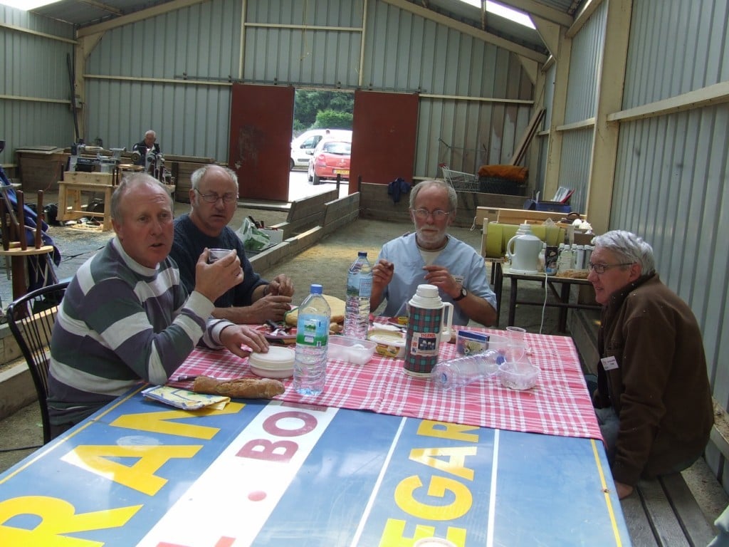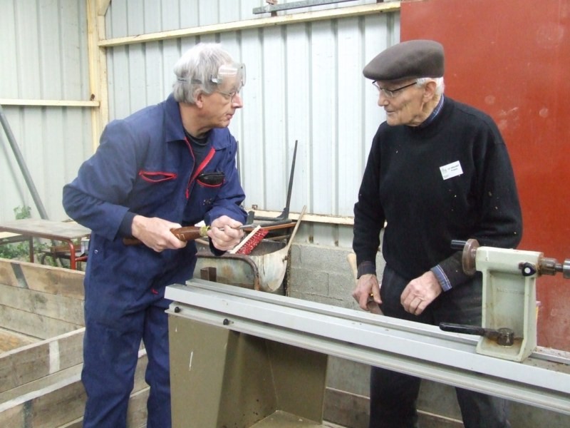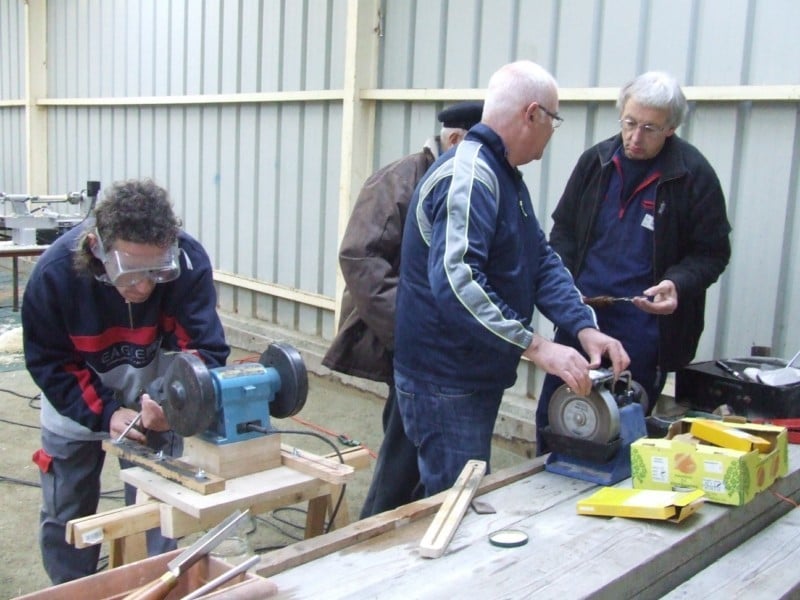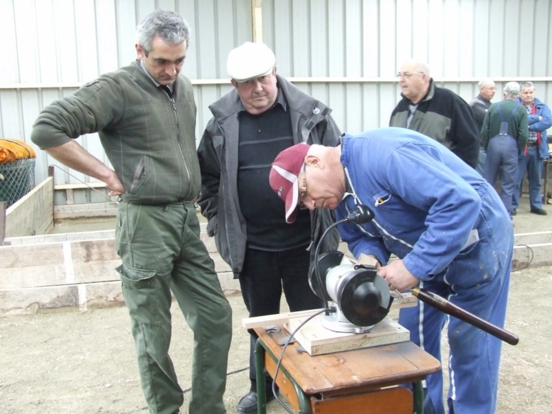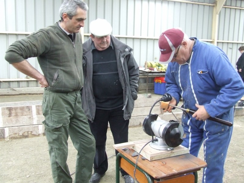 La bonne ambiance a été de mise durant la journée ; pendant que certains étaient concentrés sur leur sujet, d'autres ont profité du savoir-faire d'Auguste Yquel de PLOUAY pour s'initier à l'affûtage des outils.