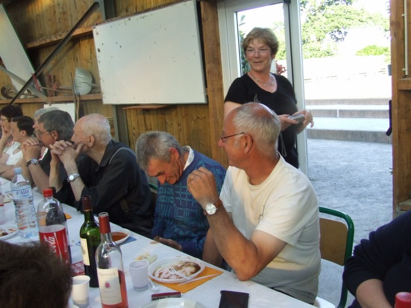 Cette dernière journée s'est déroulée dans une superbe ambiance avec la participation de 40 personnes (en 2 services) au restaurant Le Bilig de BEGARD et environ 50 personnes (adhérents et conjoints) étaient présentes le soir dans le nouveau boulodrome pour partager le repas jambon à l'os offert par notre association pour marquer la fin de saison de travail.