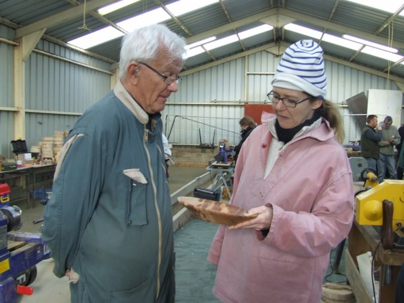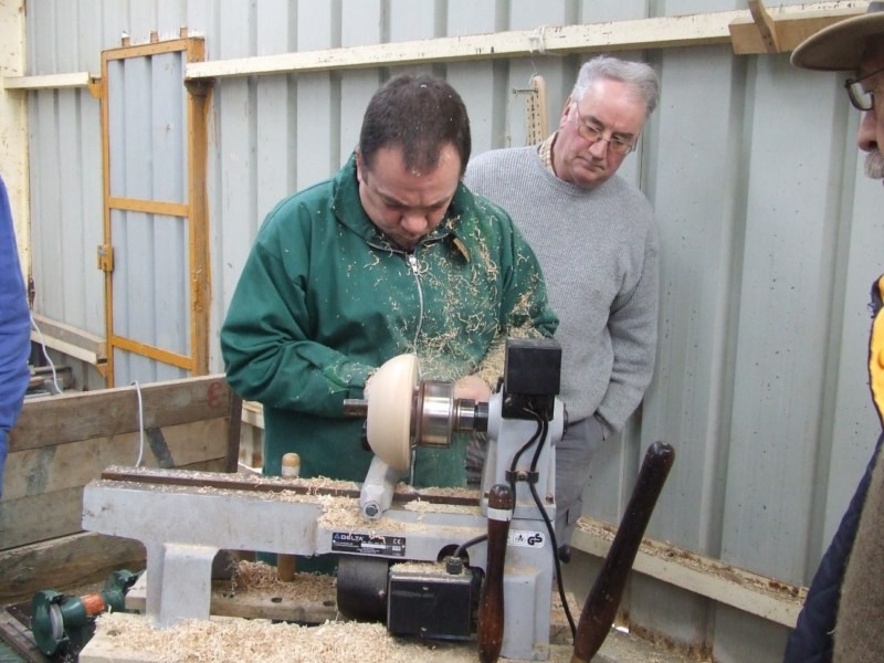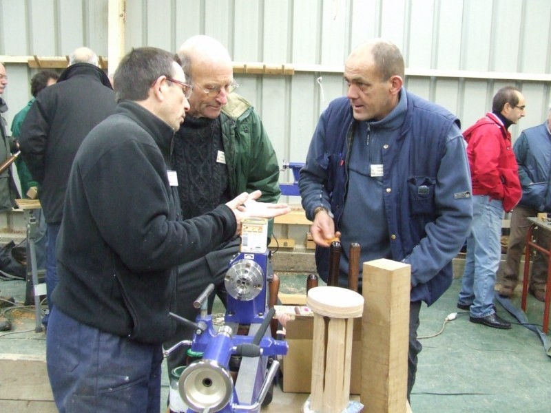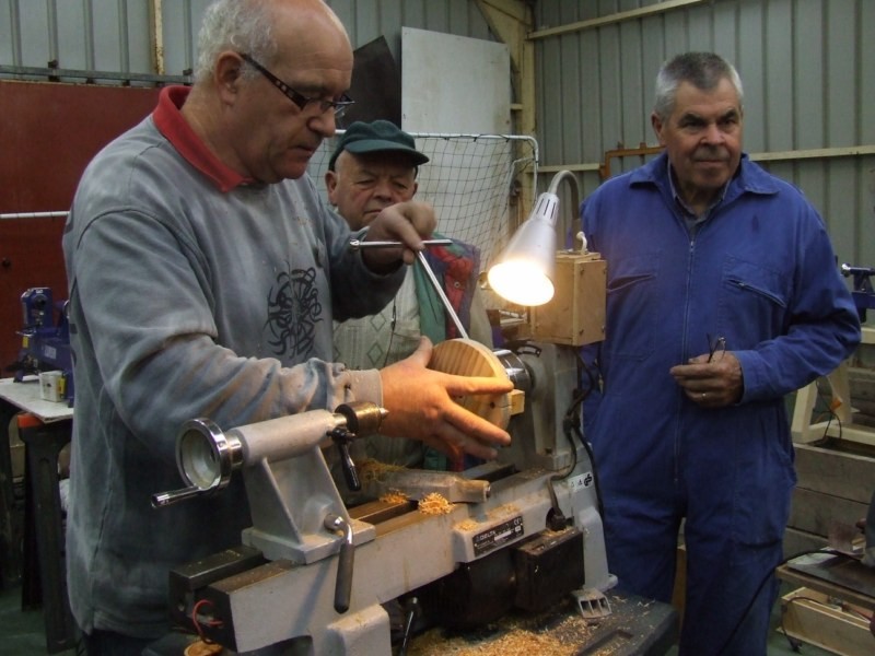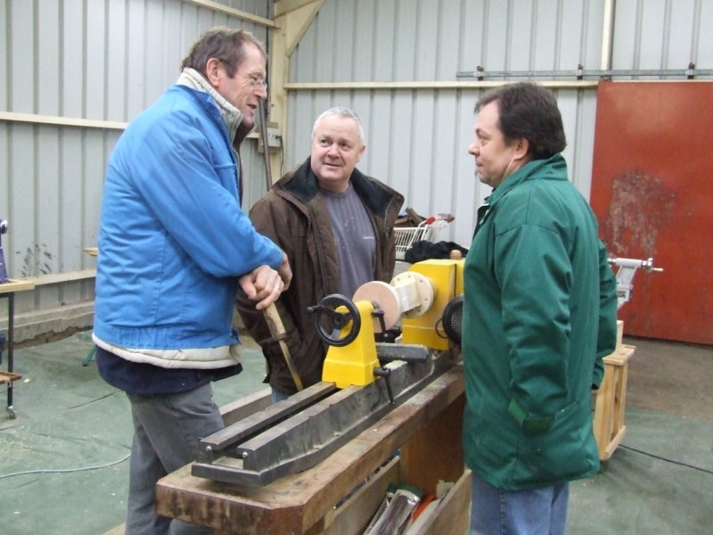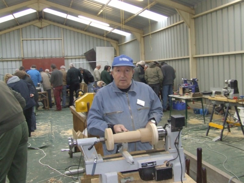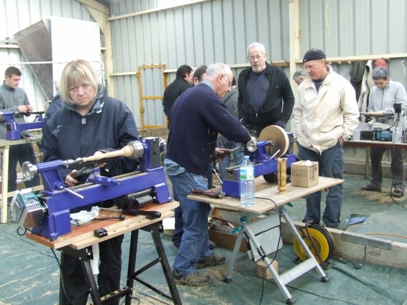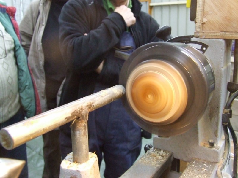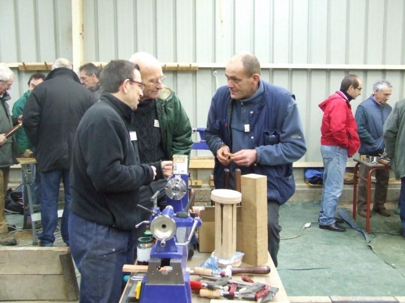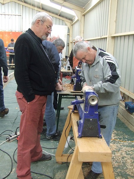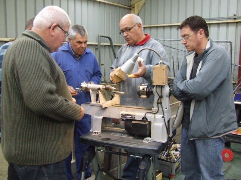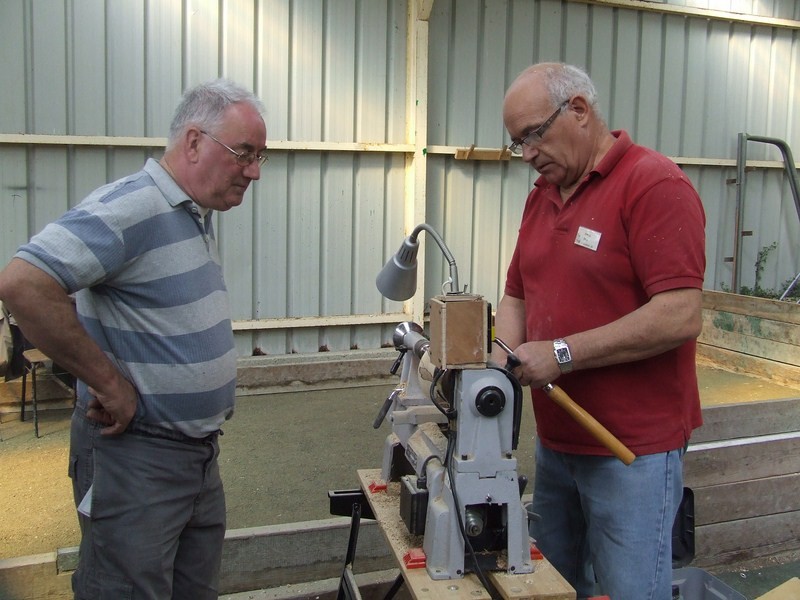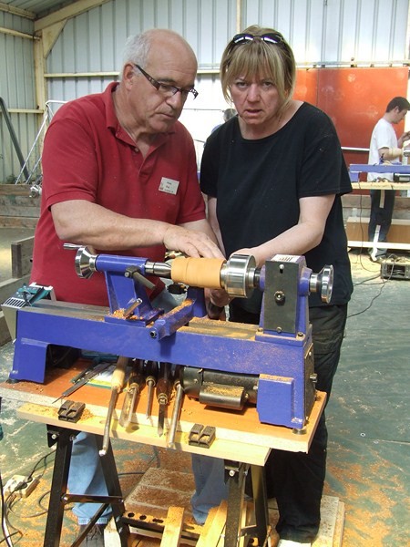 Quelques personnes dont une femme sont venues découvrir le tournage de bois, Michel MORVAN s'est chargé de les initier avec toute la patience qu'on lui connait.