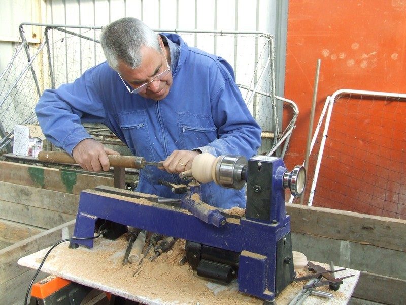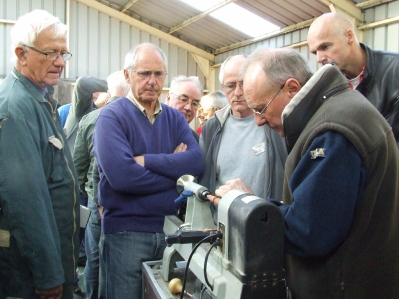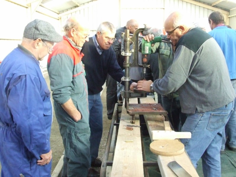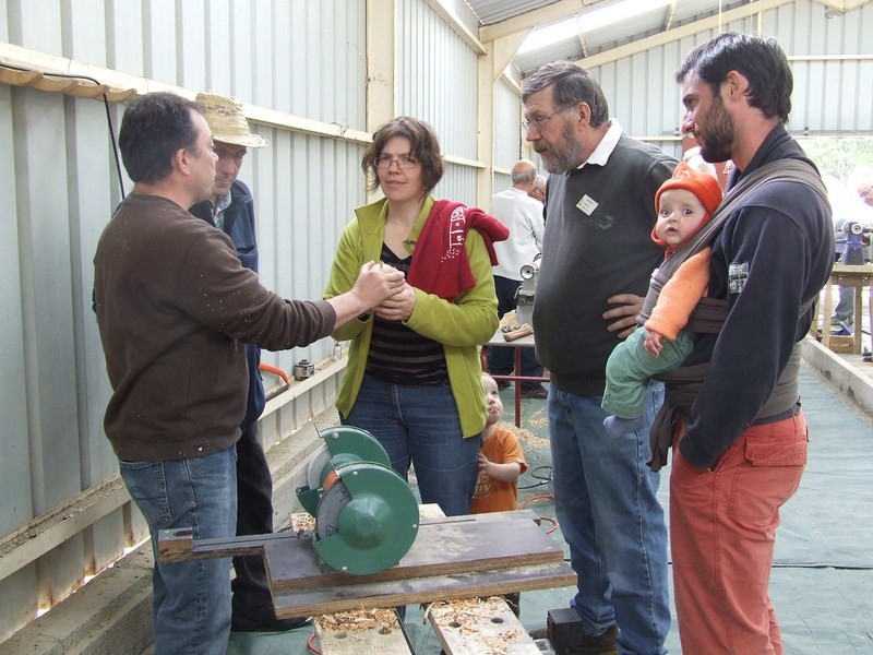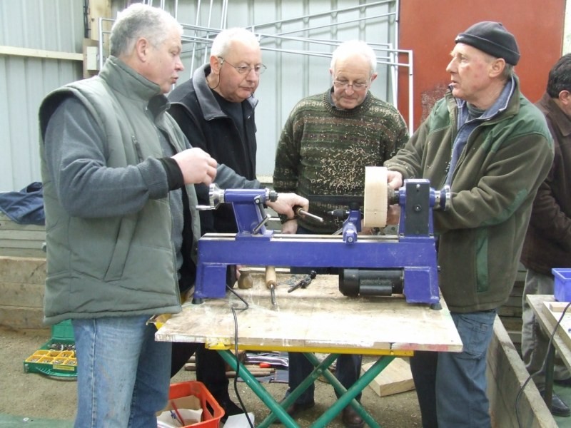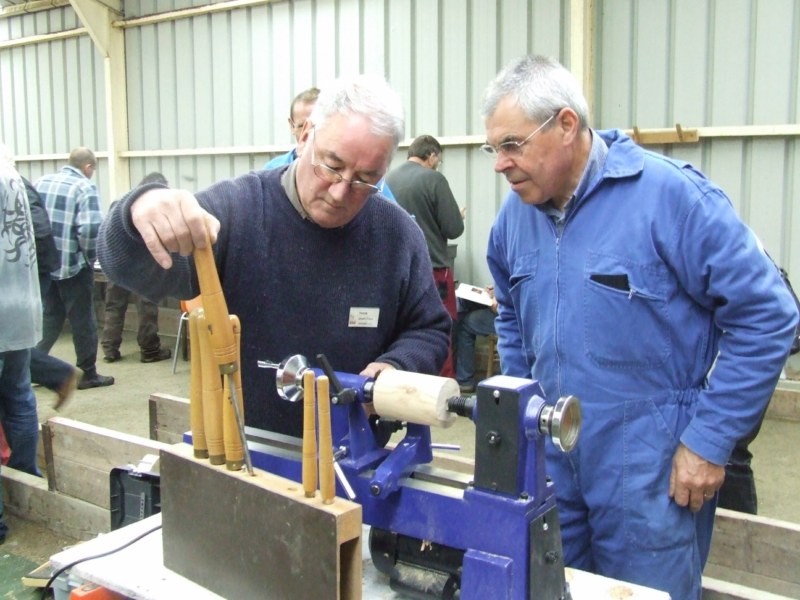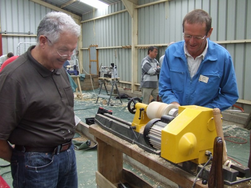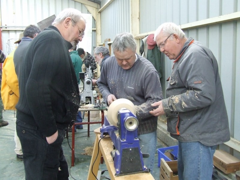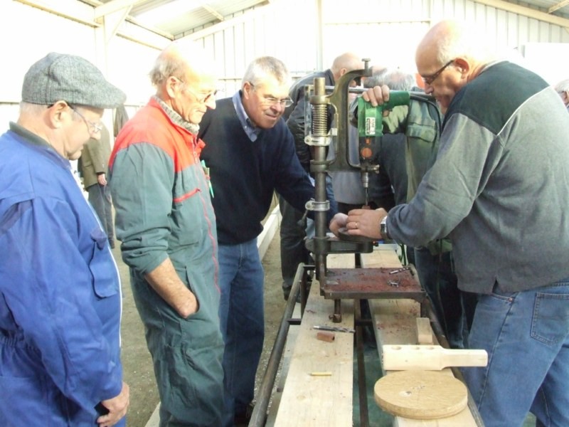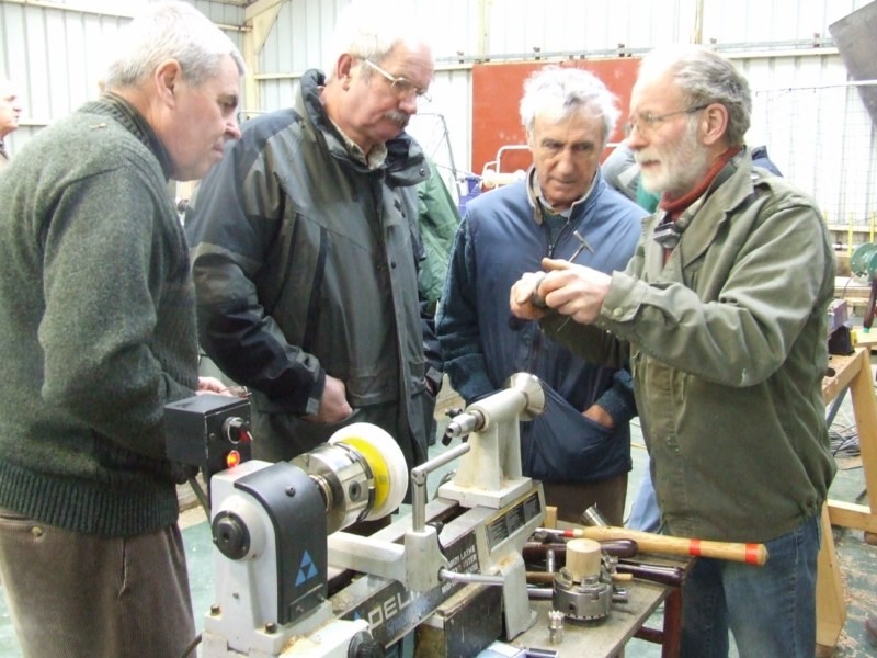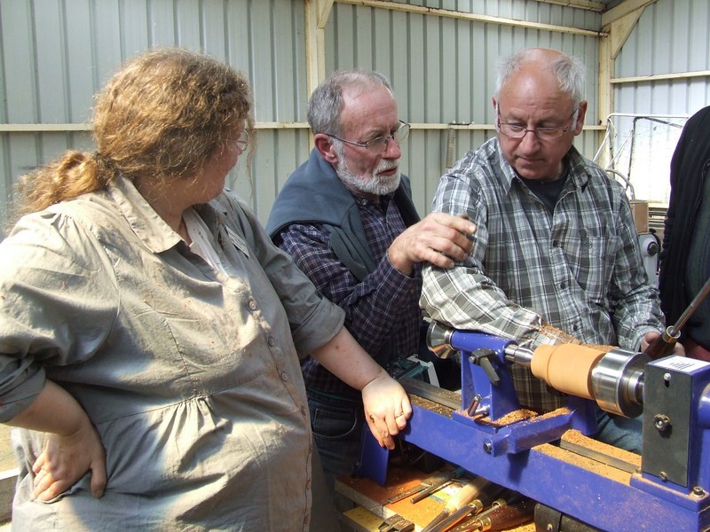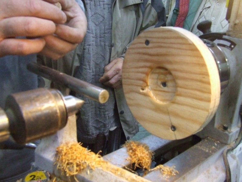 Quelques personnes dont une femme sont venues découvrir le tournage de bois, Michel MORVAN s'est chargé de les initier avec toute la patience qu'on lui connait.