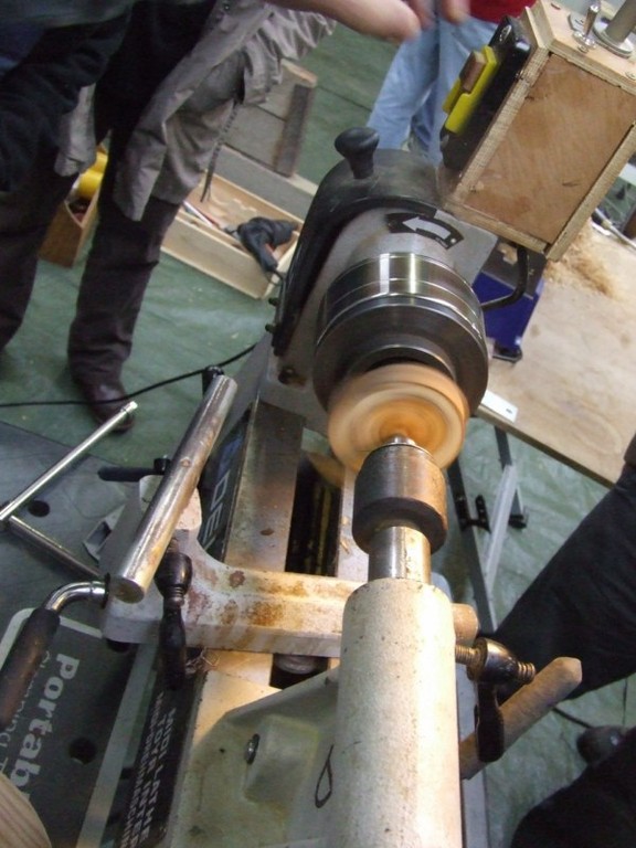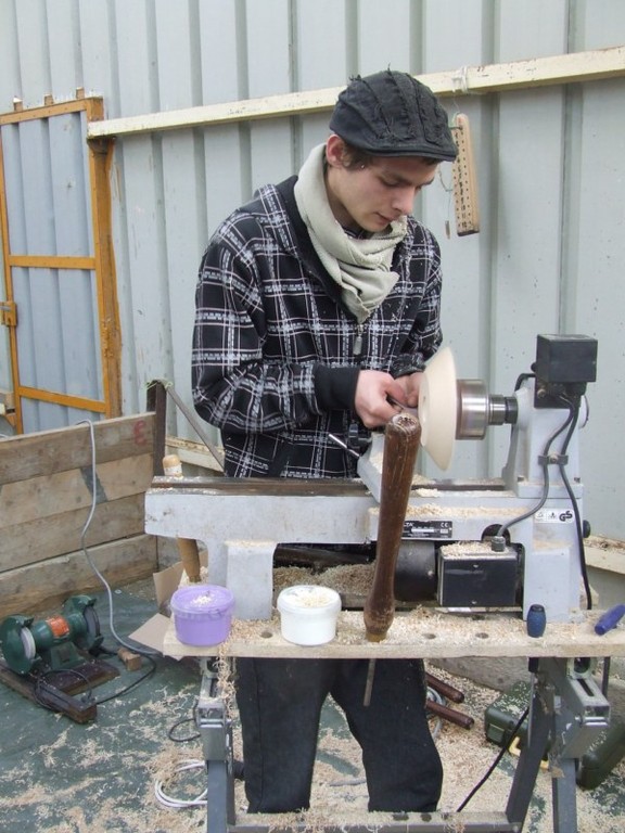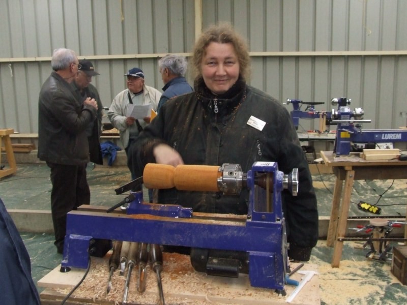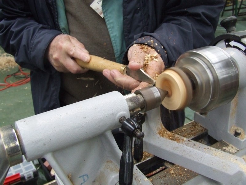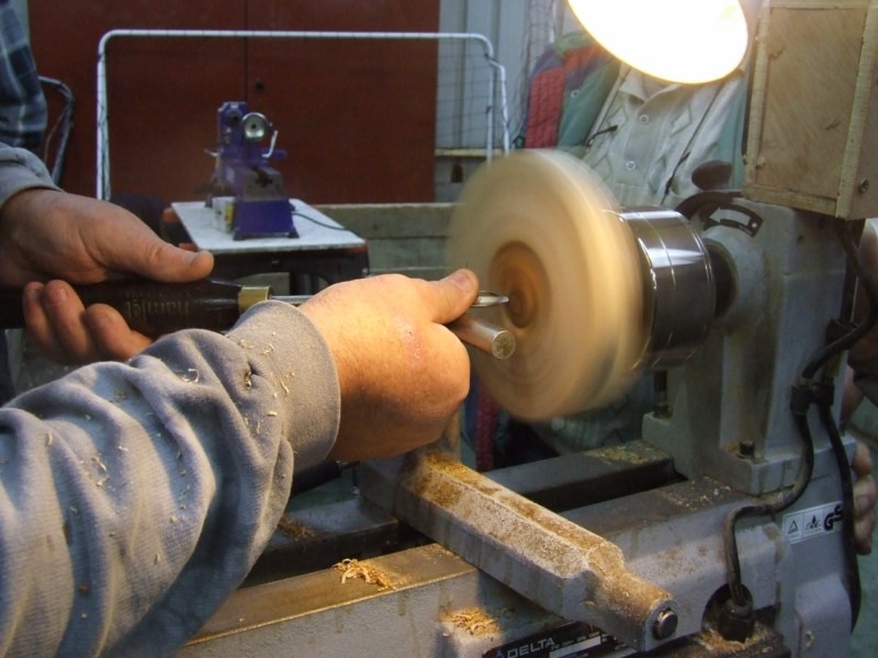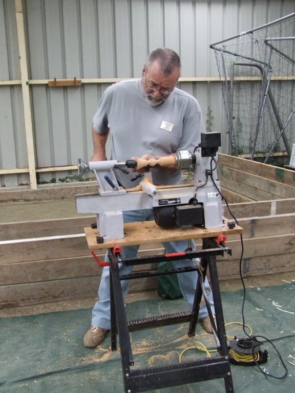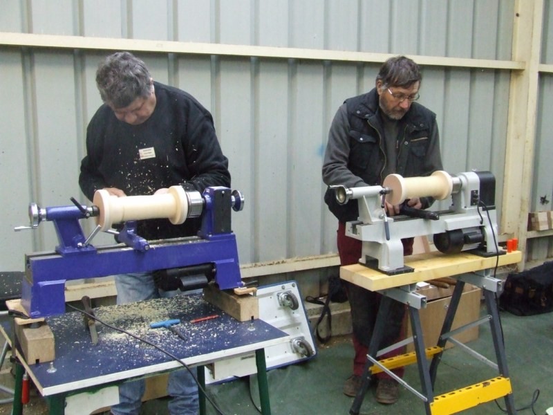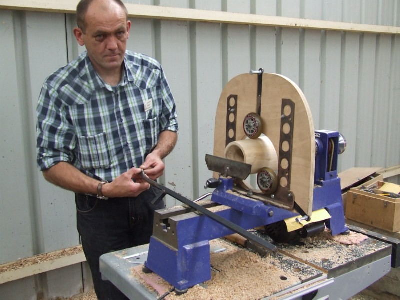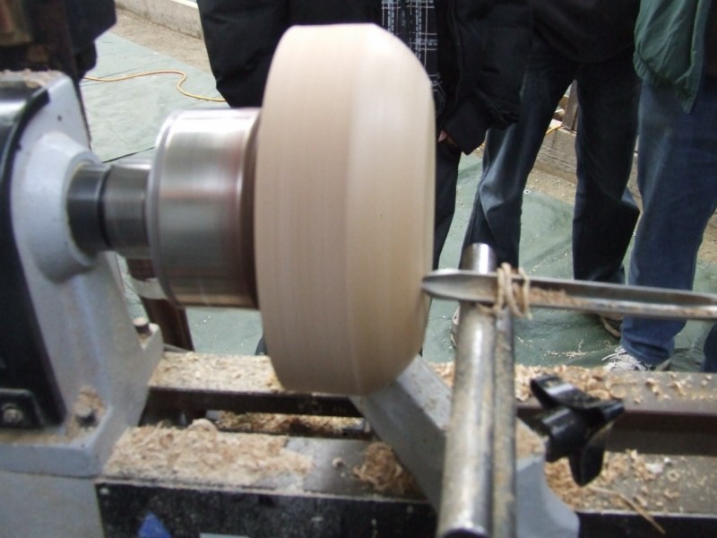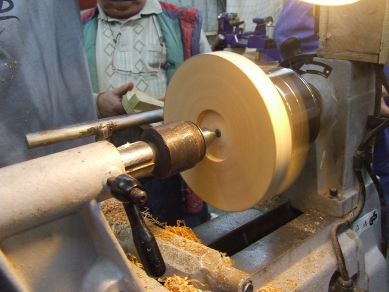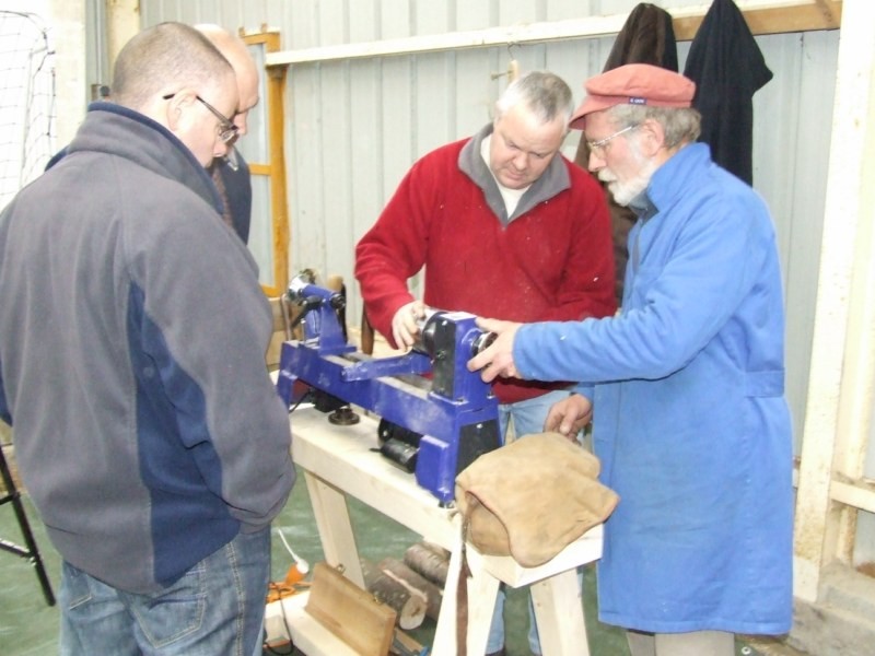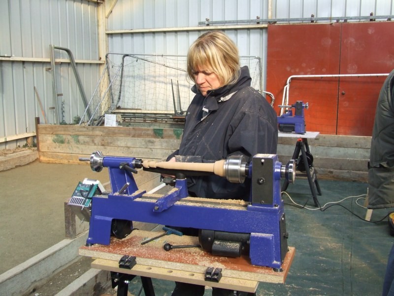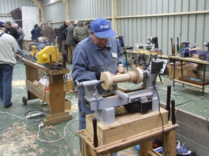 Quelques personnes dont une femme sont venues découvrir le tournage de bois, Michel MORVAN s'est chargé de les initier avec toute la patience qu'on lui connait.