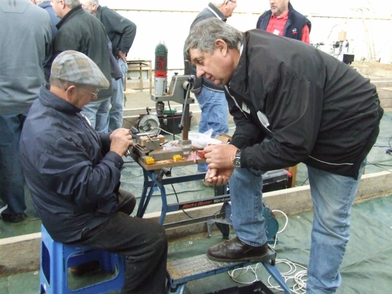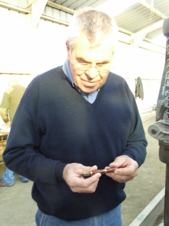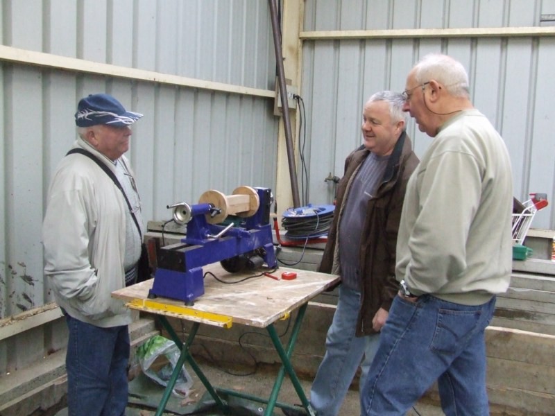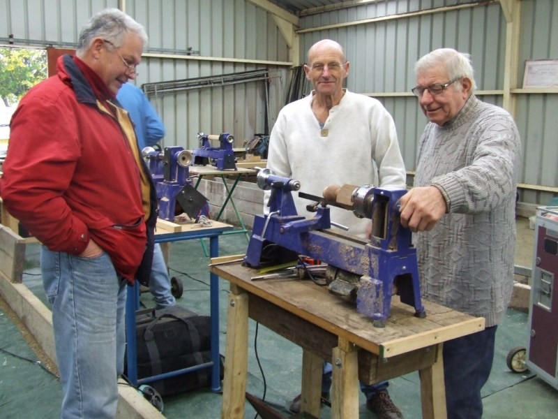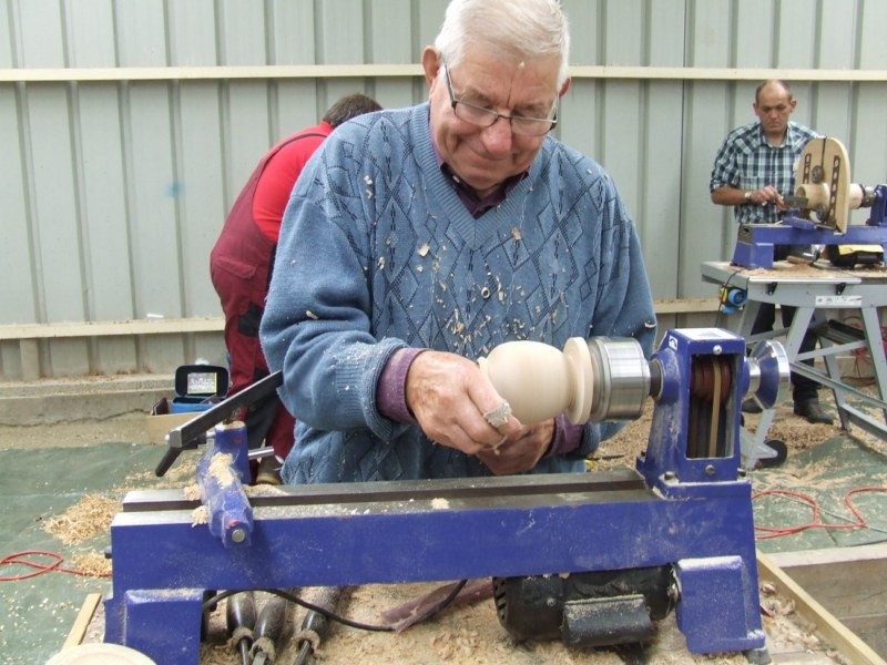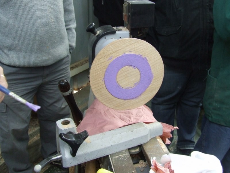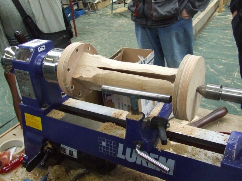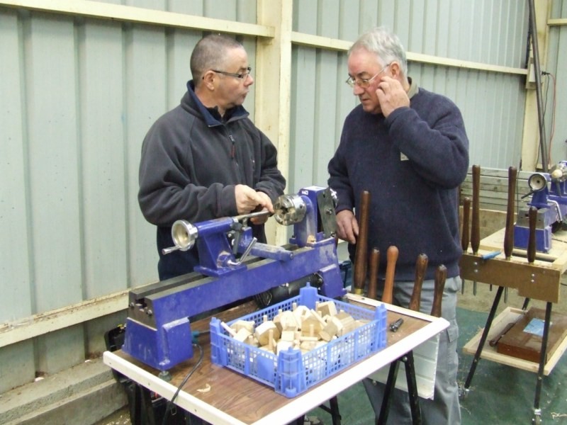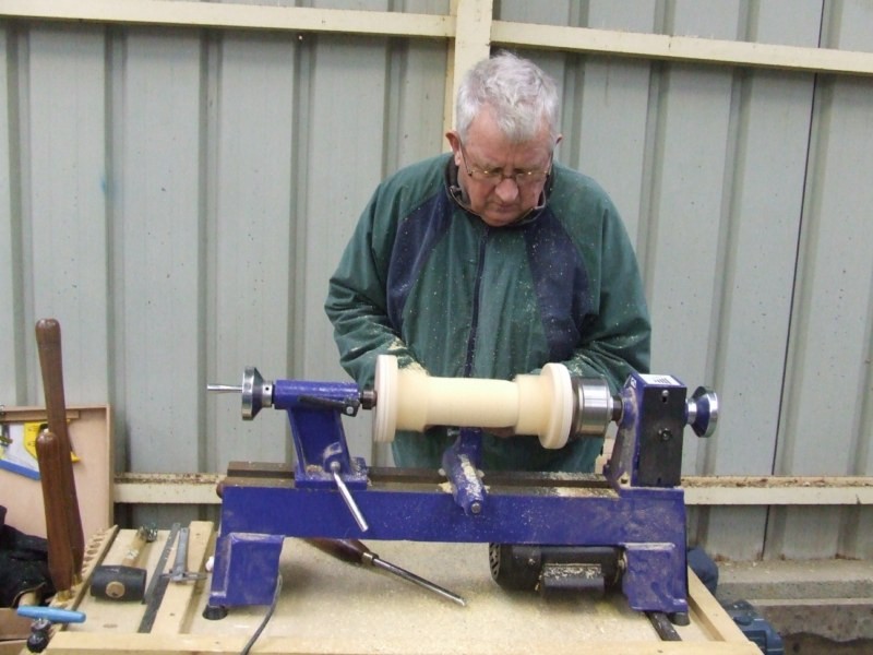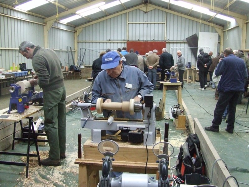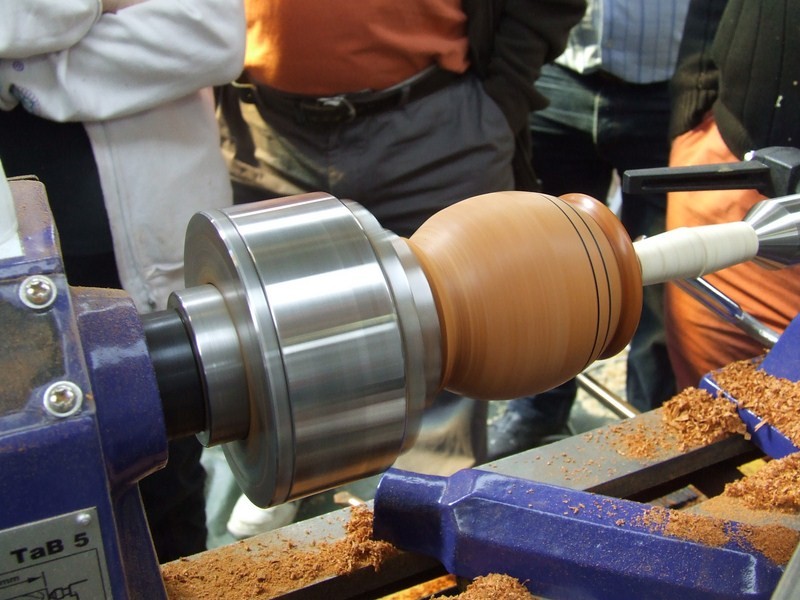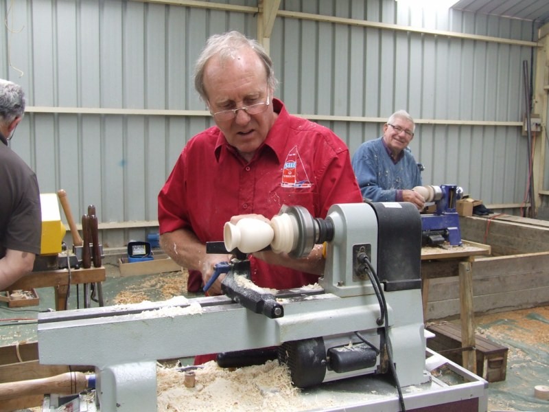 Quelques personnes dont une femme sont venues découvrir le tournage de bois, Michel MORVAN s'est chargé de les initier avec toute la patience qu'on lui connait.