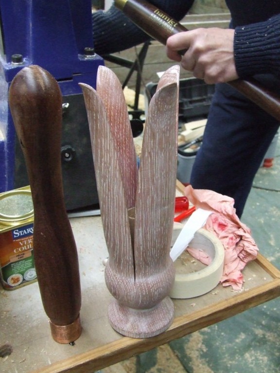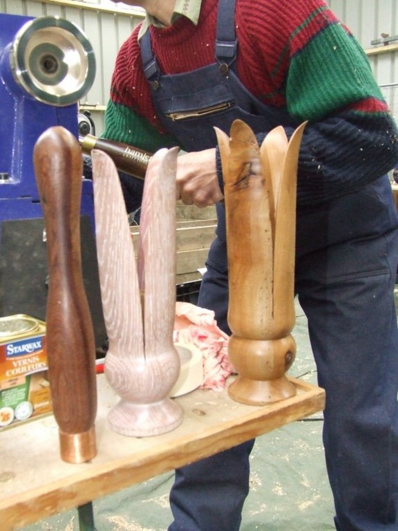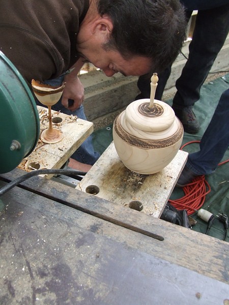 Un deuxième groupe s'est attaché à réaliser un petit vase avec un creusage profond dans du bois sec ou vert selon les préférences.