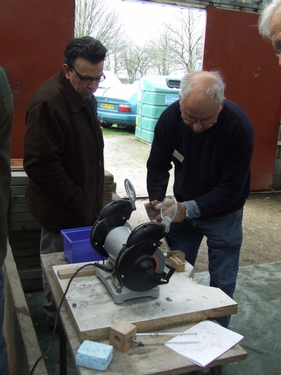 Après avoir bien terminé l'année 2010, la nouvelle année 2011 vient de commencer avec une journée de travail en commun le samedi 8 janvier dernier. Plus de 40 personnes ont particpé à ce rendez-vous, certains toute la journée, d'autres le matin ou l'après-midi. Samedi, le sujet proposé était la réalisation d'un vase à pétales et des démonstrations d'affûtage des outils par Eric LE BLANC et Michel MORVAN, qui ont fortement intéressé la délégation finistérienne composée de neuf invités.